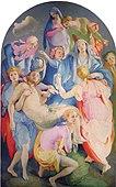 The Descent from the Cross; by Rogier van der Weyden; circa 1442; oil on oak panel; 220 × 262 cm; Museo del Prado (Madrid, Spain)