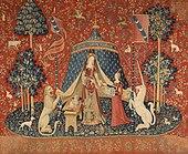 The Lady and the Unicorn, the title given to a series of six tapestries woven in Flanders, this one being called À Mon Seul Désir; late 15th century; wool and silk; 377 x 473 cm; Musée de Cluny (Paris)