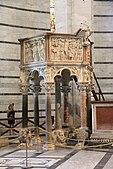 Pulpit; by Nicola Pisano; 1265–1268; marble; height: 4.6 m; Pisa Baptistery (Italy)[31]