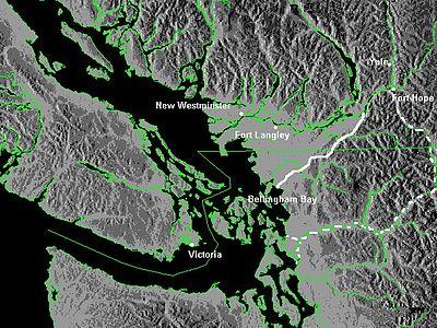 A more westerly route now in use for a major border crossing (at Sumas) was not usable due to the presence of Sumas Lake, a large shallow lake, now drained and turned into agricultural land. An alternate route to the main Whatcom Trail was the Skagit Trail, which went up the river of that name to its headwaters, from which another "back valley" emerges on the Fraser near Hope, then the HBC fur trading post Fort Hope.