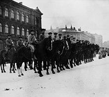The White Guard or Civil Guard (Finnish: Suojeluskunta, Swedish: Skyddskår, lit. protection corps)[1] was a voluntary militia that emerged victorious over the socialist Red Guards as a part of the Whites in the Finnish Civil War of 1918. They were generally known as the White Guard in the West due to their opposition to the communist Red Guards. In the White Army of Finland many participants were recruits, draftees and German-trained Jägers and not part of the paramilitary. The central organization was named the White Guard Organization, and the organization consisted of local chapters in municipalities.