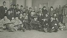 The local White Guards' function in the following 20 years—up to the Winter War—was a mixture of Veteran Corps and Home Guards. After 1921 the White Guard organisation consisted of the General Staff, White Guard districts and local White Guard chapters. Every municipality had at least a single chapter, which in part acted as an NGO (non-governmental organization) but in military affairs was part of the national chain of command. In an economical sense, each chapter was responsible for its own funding, although it received a minor grant from the state budget.[3] The White Guard was active in numerous areas of Finnish life. It organised sports activities, especially cross-country skiing, shooting, orienteering and Finnish baseball.[4] For fundraising, the chapters organised numerous informal events and lotteries. It is estimated that about one-fifth of all get-togethers in Finland were organised by the White Guard. To this end, the White Guard chapters had several hundred choirs, orchestras and theatre groups.[5]