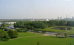 Reclamation of chemical factory sites and areas formerly polluted with chemical waste has given opportunities for developments. These include Victoria Promenade at West Bank, alongside the River Mersey, and Spike Island, now cleared of industry, which forms an open recreation area leading to footpaths along the former towpath of the Sankey Canal.[60] Adjacent to Spike Island occupying John Hutchinson's former Tower Building is the Catalyst Science Discovery Centre.[61]