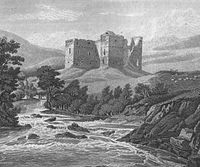 Scottish Borders folklore maintains that a Soulis was involved with the Black Arts being schooled with Michael Scot, the "wizard of the North".[2][3] Sir Walter Scott made this Evil Lord Soules - Sir William and gave him a familiar called Robin Redcap. In retaliation for a long history of cruelty, locals boiled this Lord Soules alive at Ninestane Rig.[4] The more likely culprit would have been Sir Ranulf (Randolph) de Soules of Liddel (born c.1150 and murdered by his servants in 1207/8)