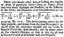 - ^ Jones, William (1706). Synopsis Palmariorum Matheseos : or, a New Introduction to the Mathematics. pp. 243, 263.