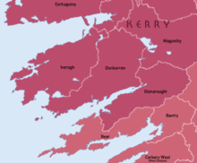 Petty gained possession of the three baronies of Iveragh, Glanarought and Dunkerron in County Kerry.[8] He soon became a projector, developing extensive plans for an ironworks and a fishery on his substantial estates in Kerry. Although he had great expectations of his application of his scientific methods to improvement, little of practical consequence came of these.[9] He started by applying his political arithmetic to his own estates: he surveyed the population and livestock, to develop an understanding of the lands potential.[8] The ironworks was established in 1660.[10]