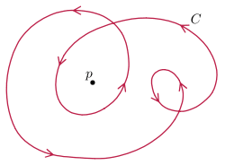 This defines the winding number of a curve around the origin in the xy plane. By translating the coordinate system, we can extend this definition to include winding numbers around any point p.