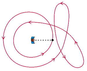 One can also consider the winding number of the path with respect to the tangent of the path itself. As a path followed through time, this would be the winding number with respect to the origin of the velocity vector. In this case the example illustrated at the beginning of this article has a winding number of 3, because the small loop is counted.