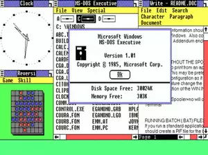 The history of Windows dates back to 1981 when Microsoft started work on a program called "Interface Manager". It was announced in November 1983 (after the Apple Lisa, but before the Macintosh) under the name "Windows", but Windows 1.0 was not released until November 1985.[13] Windows 1.0 was to compete with Apple's operating system, but achieved little popularity. Windows 1.0 is not a complete operating system; rather, it extends MS-DOS. The shell of Windows 1.0 is a program known as the MS-DOS Executive. Components included Calculator, Calendar, Cardfile, Clipboard Viewer, Clock, Control Panel, Notepad, Paint, Reversi, Terminal and Write. Windows 1.0 does not allow overlapping windows. Instead all windows are tiled. Only modal dialog boxes may appear over other windows. Microsoft sold as included Windows Development libraries with the C development environment, which included numerous windows samples.[14]