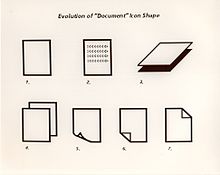 One of the main designers of the Star, Dr. David Canfield Smith, invented the concept of computer icons and the desktop metaphor, in which the user would see a desktop that contained documents and folders, with different icons representing different types of documents.[6][7][8] Clicking any icon would open a window. Users would not start programs first (e.g., a text editor, graphics program or spreadsheet software), they would simply open the file and the appropriate application would appear.
