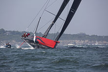 Underwater foils can become more specialized, starting with a higher-aspect ratio fin keel with hydrodynamically efficient bulbs for ballast.[40] On some racing yachts, a canting keel shifts angle from side to side to promote sailing with less heeling angle (sideway tilt), while other underwater foils take care of leeway (sideways motion).[41][30]