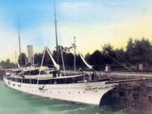 The history of steam yachts starts with large sailing yachts with a steam auxiliary engine. Early examples, driven with paddle wheels, had a railed platform from which the person conning the vessel could walk across the vessel above the main deck, the origin of the bridge. In the late 18th century, steam engines became more efficient, spars were removed and a screw propellors became standard. Large steam yachts were luxurious; their staff included a captain, engineer, and stewards, as well as deck hands.[12]