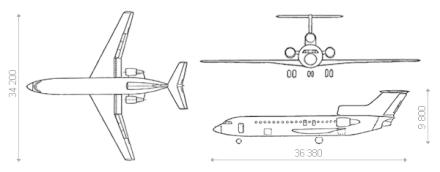 | The Yak-42 is a rear-engined trijet, low wing airliner | |