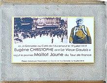 On 19 July 2019, on the occasion of the centenary, a plaque was unveiled on the scene of delivery of the first yellow jersey in Grenoble.[11]