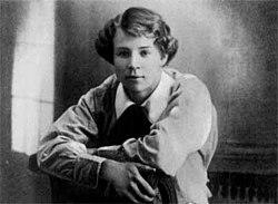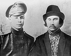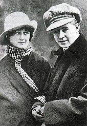 In March 1917, Yesenin was sent to the Warrant Officers School but soon deserted the Kerensky's army.[10] In August 1917 (having divorced Izryadnova a year earlier) Yesenin married for a second time, to Zinaida Raikh (later an actress and the wife of Vsevolod Meyerhold). They had two children, a daughter Tatyana and a son Konstantin.[5] The parents subsequently quarreled and lived separately for some time prior to their divorce in 1921. Tatyana became a writer and journalist and Konstantin Yesenin would become a well-known soccer statistician.
