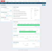 Zabbix is an open-source monitoring software tool for diverse IT components, including networks, servers, virtual machines (VMs) and cloud services. Zabbix provides monitoring metrics, among others network utilization, CPU load and disk space consumption. Zabbix monitoring configuration can be done using XML based templates which contain elements to monitor.[2] The software monitors operations on Linux, Hewlett Packard Unix (HP-UX), Mac OS X, Solaris and other operating systems (OSes); however, Windows monitoring is only possible through agents. Zabbix can use MySQL, MariaDB, PostgreSQL, SQLite, Oracle or IBM DB2 to store data.[3] Its backend is written in C and the web frontend is written in PHP. Zabbix offers several monitoring options:
