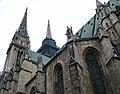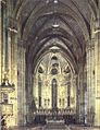 The cathedral was severely damaged in the 1880 Zagreb earthquake. The main nave collapsed and the tower was damaged beyond repair. The restoration of the cathedral in the Neo-Gothic style was led by Hermann Bollé, bringing the cathedral to its present form. As part of that restoration, two spires 108 m (354 ft) high were raised on the western side, both of which are now in the process of being restored as part of an extensive general restoration of the cathedral. [4]