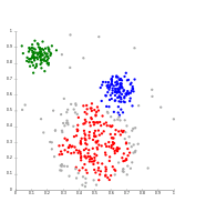 - Soft clustering (also: fuzzy clustering): each object belongs to each cluster to a certain degree (for example, a likelihood of belonging to the cluster)
