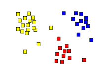 The most popular[12] density based clustering method is DBSCAN.[13] In contrast to many newer methods, it features a well-defined cluster model called "density-reachability". Similar to linkage based clustering, it is based on connecting points within certain distance thresholds. However, it only connects points that satisfy a density criterion, in the original variant defined as a minimum number of other objects within this radius. A cluster consists of all density-connected objects (which can form a cluster of an arbitrary shape, in contrast to many other methods) plus all objects that are within these objects' range. Another interesting property of DBSCAN is that its complexity is fairly low – it requires a linear number of range queries on the database – and that it will discover essentially the same results (it is deterministic for core and noise points, but not for border points) in each run, therefore there is no need to run it multiple times. OPTICS[14] is a generalization of DBSCAN that removes the need to choose an appropriate value for the range parameter , and produces a hierarchical result related to that of linkage clustering. DeLi-Clu,[15] Density-Link-Clustering combines ideas from single-linkage clustering and OPTICS, eliminating the parameter entirely and offering performance improvements over OPTICS by using an R-tree index.
