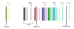Discrete spectra are contrasted with the continuous spectra also seen in such experiments, for example in thermal emission, in synchrotron radiation, and many other light-producing phenomena.