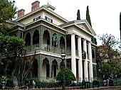 The Haunted Mansion in Disneyland consists of a building and façade in the front, while the majority of the ride is outside the park in a connected building