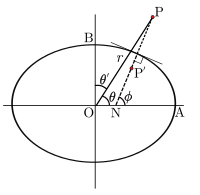 The geocentric latitude θ is the complement of the polar angle θ′ in conventional spherical polar coordinates in which the coordinates of a point are P(r,θ′,λ) where r is the distance of P from the centre O, θ′ is the angle between the radius vector and the polar axis and λ is longitude. Since the normal at a general point on the ellipsoid does not pass through the centre it is clear that points P' on the normal, which all have the same geodetic latitude, will have differing geocentric latitudes. Spherical polar coordinate systems are used in the analysis of the gravity field.