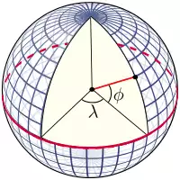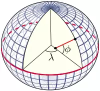 - Spherical latitude: the angle between the normal to a spherical reference surface and the equatorial plane.