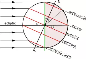- ^ The value of this angle today is 23°26′11.6″ (or 23.43654°). This figure is provided by Template:Circle of latitude.