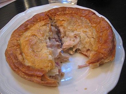 Pies remained as a staple of traveling and working peoples in the colder northern European countries, with regional variations based on both the locally grown and available meats, as well as the locally farmed cereal crop. In these colder countries, butter and lard were the main fats in use, which meant that pie cooks created dough that could be rolled flat and moulded into different shapes.[6] The Cornish pasty is an adaptation of the pie to a working man's daily food needs.[1] The first reference to "pyes" as food items appeared in England (in a Latin context) as early as the 12th century), but it is not clear that this referred to baked pies.