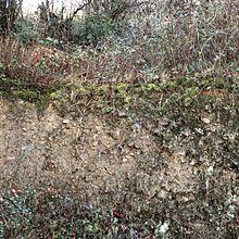 Subsoil is the layer of soil under the topsoil on the surface of the ground. Like topsoil, it is composed of a variable mixture of small particles such as sand, silt and clay, but with a much lower percentage of organic matter and humus.