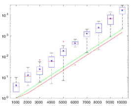 The figure (right) illustrates distribution of lengths N of pairwise almost orthogonal chains of vectors that are independently randomly sampled from the n-dimensional cube [−1, 1]n as a function of dimension, n. A point is first randomly selected in the cube. The second point is randomly chosen in the same cube. If the angle between the vectors was within π/2 ± 0.037π/2 then the vector was retained. At the next step a new vector is generated in the same hypercube, and its angles with the previously generated vectors are evaluated. If these angles are within π/2 ± 0.037π/2 then the vector is retained. The process is repeated until the chain of almost orthogonality breaks, and the number of such pairwise almost orthogonal vectors (length of the chain) is recorded. For each n, 20 pairwise almost orthogonal chains were constructed numerically for each dimension. Distribution of the length of these chains is presented.